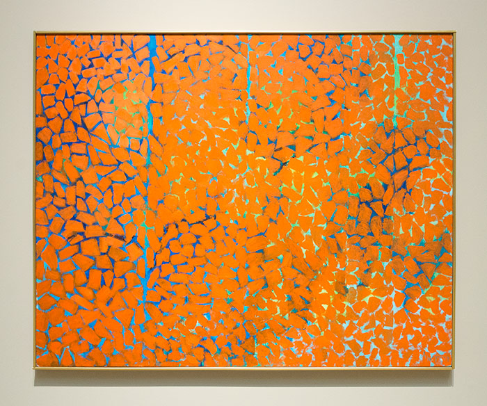 The visual impact of Alma Woodsey Thomas's Leaves Fluttering in the Breeze, 1973, acrylic on canvas, has withstood the test of time. Interest in the artist experienced a renaissance last year, with several exhibitions of her work on view. On loan from the Smithsonian American Art Museum. Photo by Kate Lain.