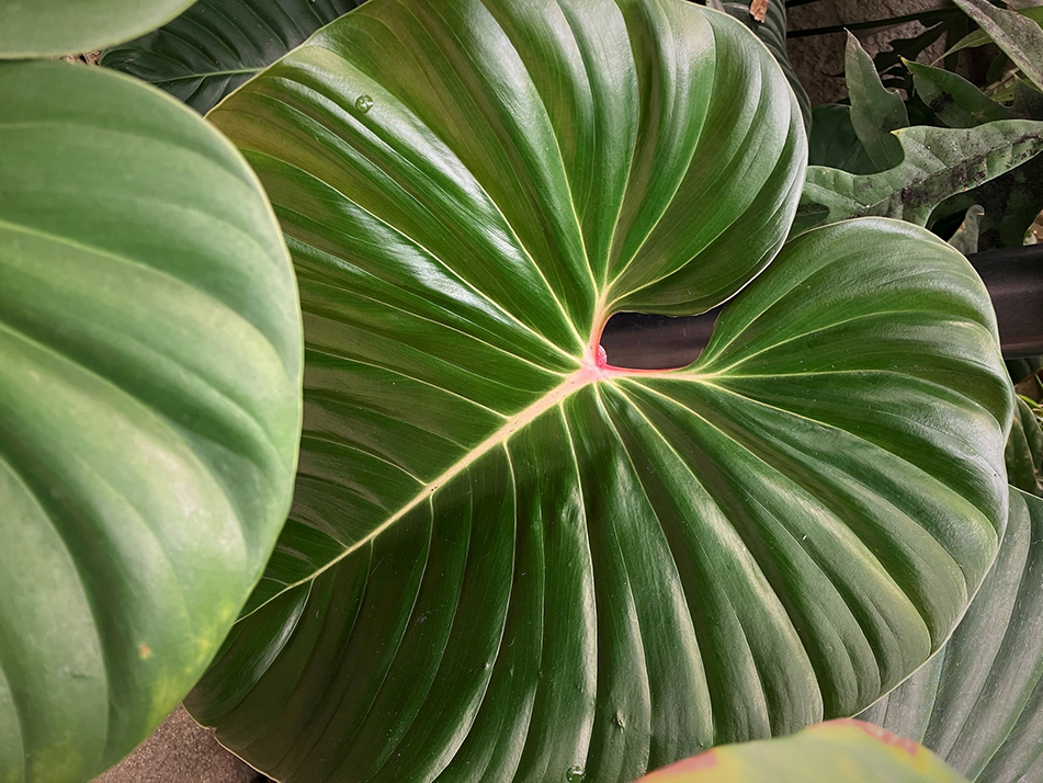 Philodendron gardeniodorum is a species that was described, based on a Huntington specimen, as new to science in 2016. The adult plant outgrew its space, and this juvenile will hopefully transition to the adult phase in a few years. It is native to Ecuador. Photo by Sandy Masuo.