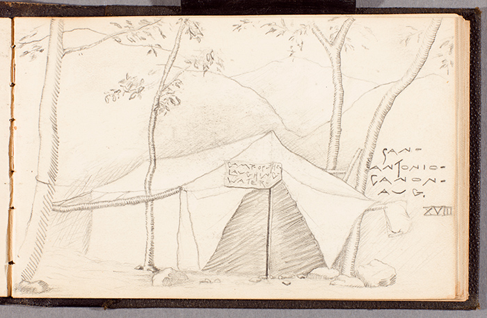 Percival’s most detailed view of a campsite during her 1893 trip to Old Baldy. The Huntington Library, Art Collections, and Botanical Gardens.