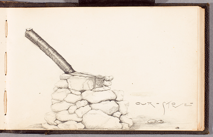 Percival’s drawing of a rustic stone and pipe camp stove, 1893. The Huntington Library, Art Collections, and Botanical Gardens.