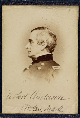 Confederate forces attacked Fort Sumter early in the morning of April 12, 1861. Two days later, Major Robert Anderson surrendered the fortification off the coast of South Carolina, but not before lowering the American flag and keeping it as a souvenir. A fragment of that flag is bound into a volume of a unique set of books in The Huntington Library.