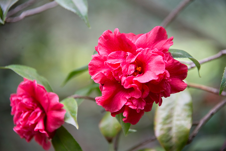 Recent rains were welcome relief for Camellia japonica ‘Are-Jishi’, which has red-pink flowers in a peony form. Photo by Kate Lain.