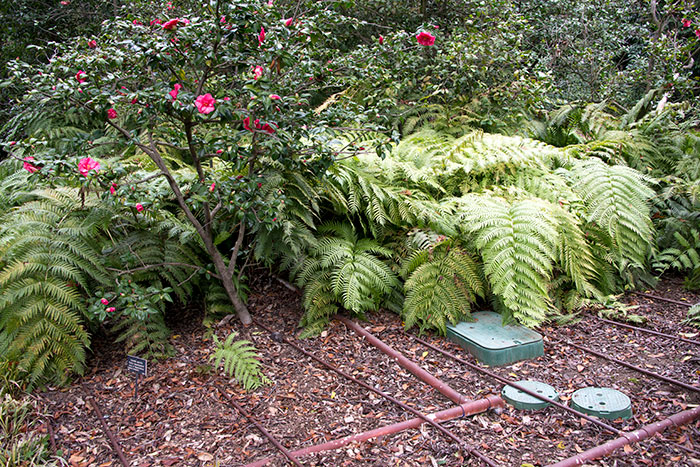 To date, The Huntington has installed approximately 41 miles of drip irrigation tubing in the gardens. MacLaren estimates another five miles of tubing is required to cover the entire camellia collection.