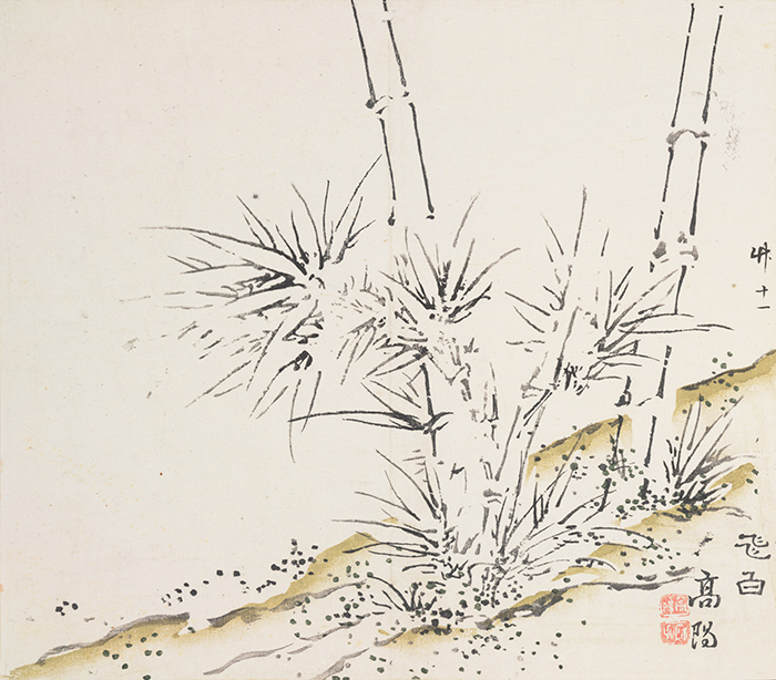 Artist Gao Yang created this striking image of bamboo, “Flying White.” Bamboo 11, Ten Bamboo Studio Manual of Calligraphy and Painting, ca. 1633–1703, woodblock-printed book mounted as album leaves, ink and colors on paper. The Huntington Library, Art Collections, and Botanical Gardens.