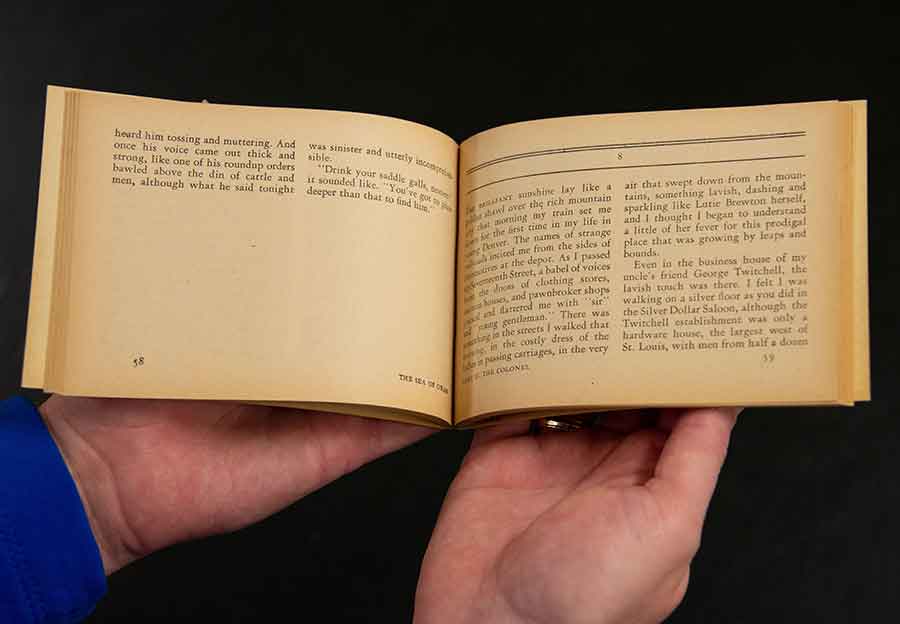 Unlike traditionally published books, Armed Services Editions were printed in four columns across a horizontal layout. This was thought to make them easier on the reader’s eyes. The Huntington Library, Art Collections, and Botanical Gardens. Photo by Deborah Miller.