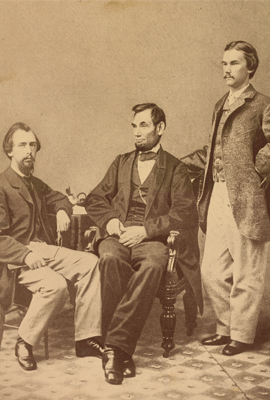 Abraham Lincoln with his White House secretaries John G. Nicolay and John M. Hay, ca. 1863. Huntington Library, Art Collections, and Botanical Gardens.