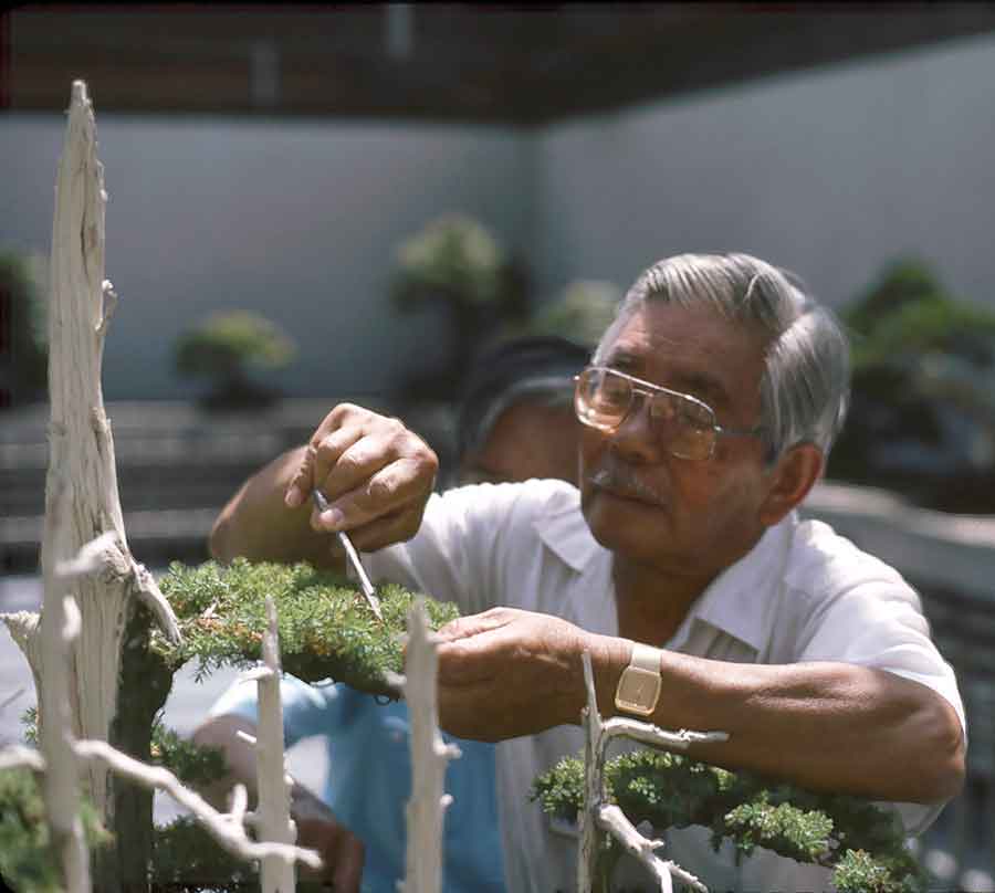 John Naka tends to “Goshin” in 1986 at the National Bonsai & Penjing Museum. Photo courtesy of the U.S. National Arboretum.