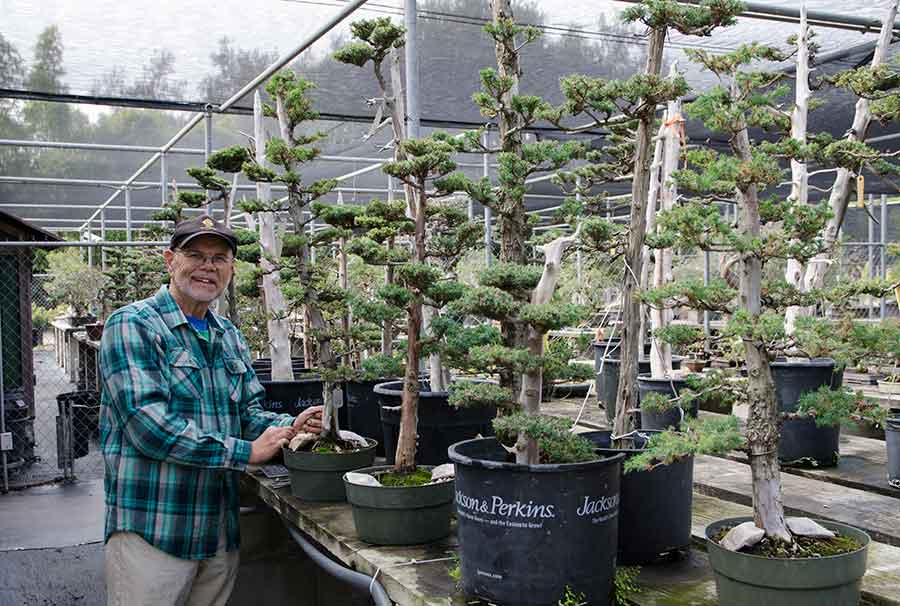 Ted Matson, curator of the bonsai collections at The Huntington, disassembled the ailing “Goshin III” in 2015 and has been nursing the individual trees back to health. The work will be replanted during the California Bonsai Society’s annual show at The Huntington the weekend of March 23–24. Photo by Lisa Blackburn.