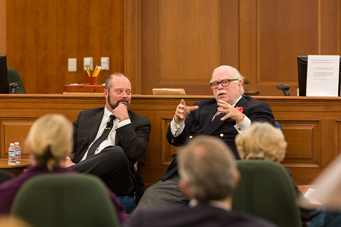 William Deverell, left, and Kevin Starr at a 2014 event in The Huntington’s Ahmanson Reading Room, celebrating the 10th anniversary of the Huntington-USC Institute on California and the West. Photo by Brian Morri/211 Photography.