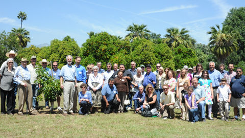 Thursday was a green-letter day. A simple idea planted more than 10 years ago came to life when board members of the California Avocado Society welcomed Brokaw, Rodriguez, and Shepherd family members to celebrate the successful establishment of Shepherd-Brokaw Orchard, the heart of a new Huntington Avocado Collection. Three rows of young avocado trees have been successfully grafted with 33 different avocado cultivars, clones that were selected due to their importance in the history of the avocado industry in California.