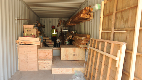 Now I have to say there is still not much to look at. Our teahouse sort of looks like the most complex kit you might purchase at Ikea. Thankfully, Yoshiaki Nakamura and his craftsmen (who completely restored this building during its sojourn to Kyoto) arrive soon to help us learn how it is properly assembled. So as workers were unpacking the 40-foot container on Wednesday, others were busy at the building site nearby, compacting soil to prepare for construction of the foundation, which must be in place in two weeks. Somehow, that will happen.