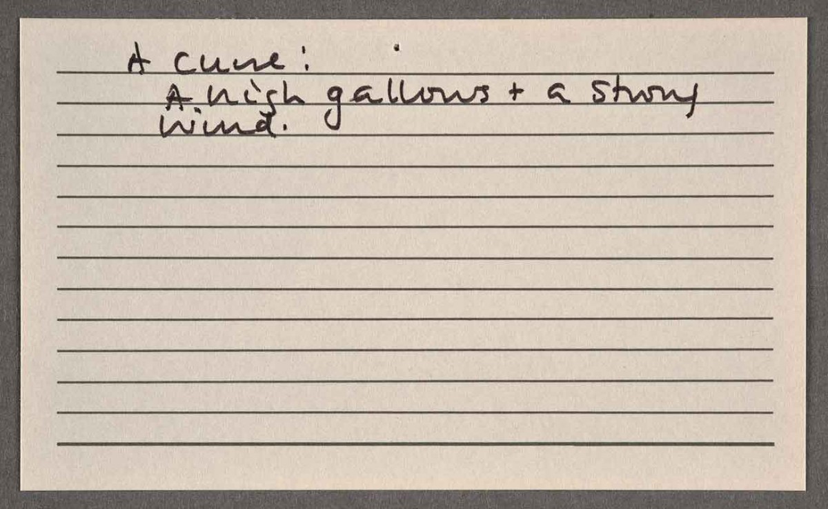 A curse that appears in Hilary Mantel’s novel The Giant O’Brien (1998). The Huntington Library, Art Museum, and Botanical Gardens.