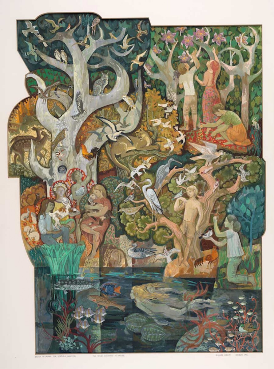 Susan Hertel for Millard Sheets Designs, Inc., The Child's Discovery of Nature, 1974. Copyright Millard Sheets Estate, 2019.