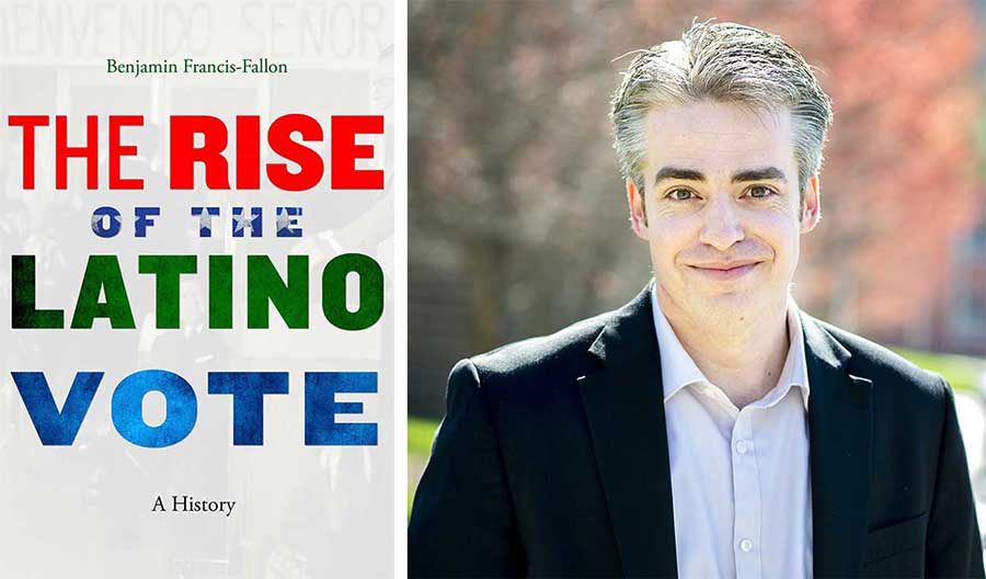 Left: The Rise of the Latino Vote: A History (Harvard University Press, 2019), winner of the 2021 Shapiro Book Prize. Right: Benjamin Francis-Fallon. Photo: Western Carolina University.