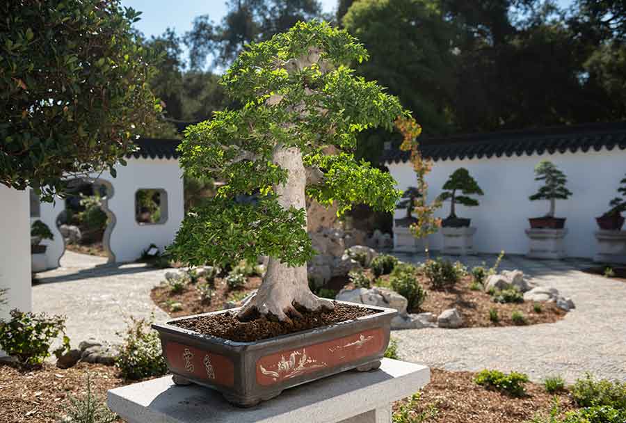 After a nearly five-month postponement caused by the COVID-19 pandemic, The Huntington opened the outdoor areas of the highly anticipated expansion of its renowned Chinese Garden, Liu Fang Yuan 流芳園, on Oct. 9. In the Verdant Microcosm 翠玲瓏, a spacious courtyard within the newly expanded garden, the venerable art of shaping trees and depicting landscapes in miniature—penjing—was on display. In October, we featured several examples of the art form, many created by one of The Huntington’s own experts. Read more.