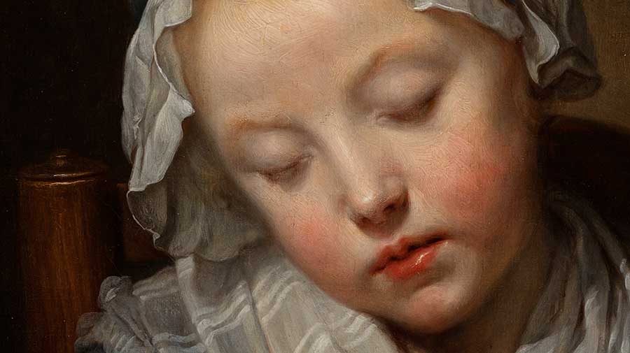 Young Knitter Asleep is the work of Jean-Baptiste Greuze (1725–1805), a painter who was popular in 18th-century France among both critics and the public. Beyond the charm of the young subject, deeper readings of the picture may be particularly relevant today as many parents are called upon to serve as teachers to their children, especially now that schools have been closed due to the coronavirus.