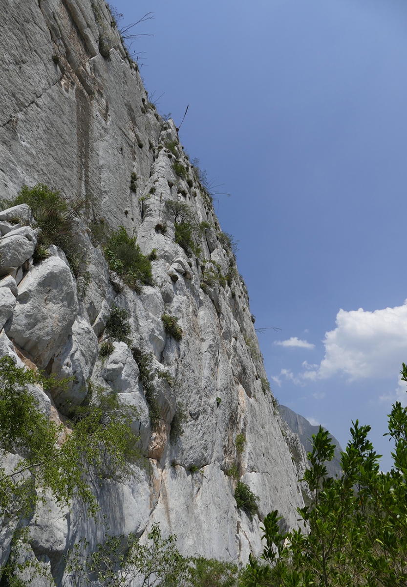 The cliffside habitat of Mammillaria plumosa in Huasteca Canyon, located near Monterrey, Nuevo León, Mexico. Photograph by John N. Trager.