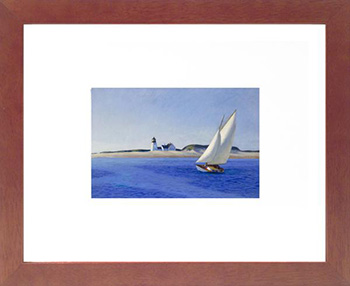 For the nautical Dad. Small framed reproduction of The Long Leg (1935) by Edward Hopper (American, 1882-1967). Image size: 3 3/8 x 5 3/8" / Frame size: 9 x 11" / Off-white mat, brown, light grain wood frame.