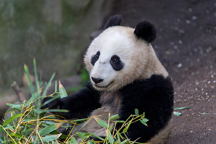 Xiao Liwu, one of San Diego Zoo's three giant pandas, dines in his Zoo enclosure on bamboo harvested from the gardens at The Huntington, among other sources. Photo courtesy of San Diego Zoo Global.