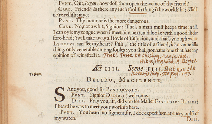 How successful was that attempt? How did readers regard the book in the years after it appeared? What do their responses tell us about why Jonson was more celebrated than Shakespeare in the century or so after his death, only to be gradually eclipsed by his great rival? These are among the questions that I was able to explore through The Huntington’s outstanding Jonson holdings—which include more than 30 of Jonson’s 1616 Works, each one unique.
