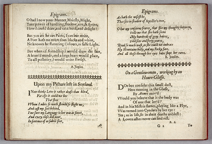 “Upon my Picture Left in Scotland” is one of the finest and most memorable poems in Ben Jonson’s Execration against Vulcan, London, 1640. The Huntington Library, Art Collections, and Botanical Gardens.
