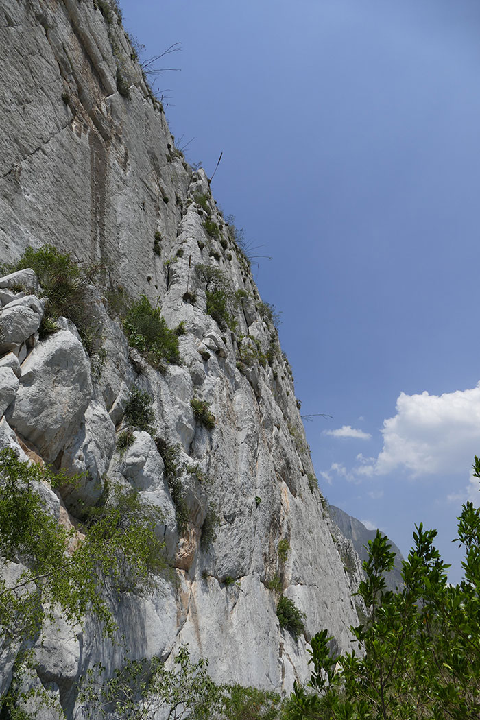 The cliffside habitat of Mammillaria plumosa in Huasteca Canyon. Photo by John Trager.