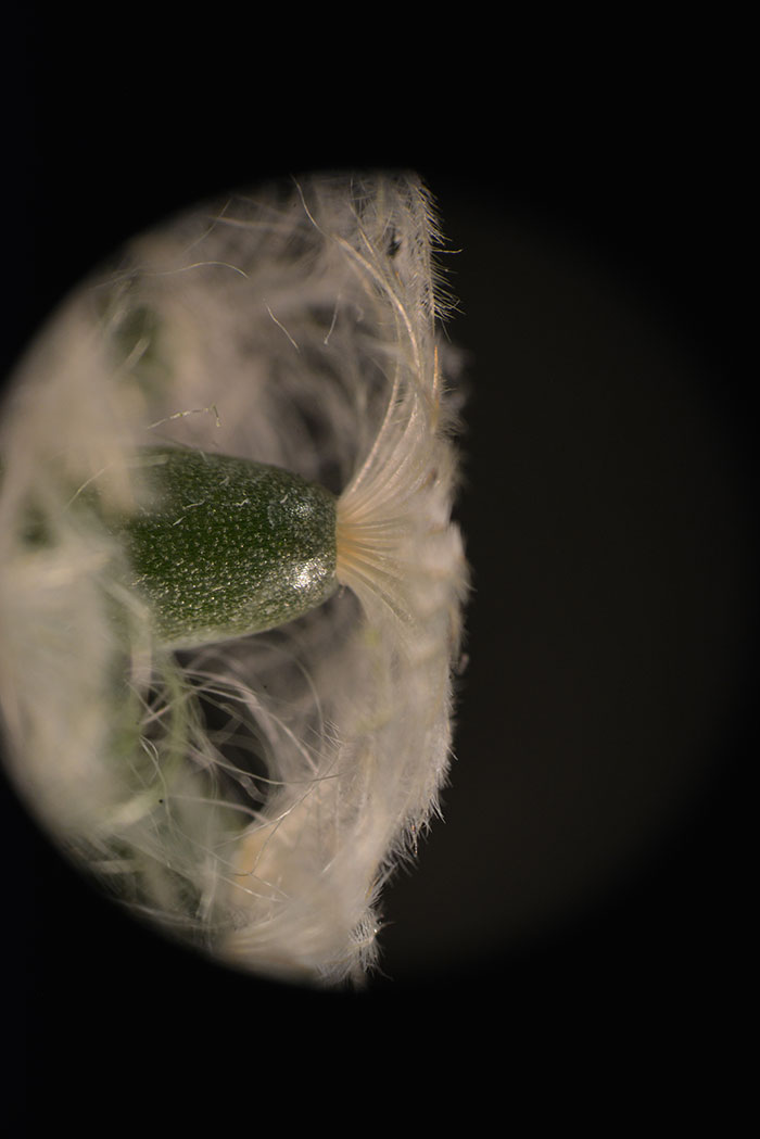 After returning from Mexico, I was inspired to take a closer look at our Mammillaria plumosa. With the help of The Huntington’s research botanist, Raquel Folgado, we captured some close-ups through a dissecting microscope. Under magnification, the spines radiating from each areole look like ostrich feathers.