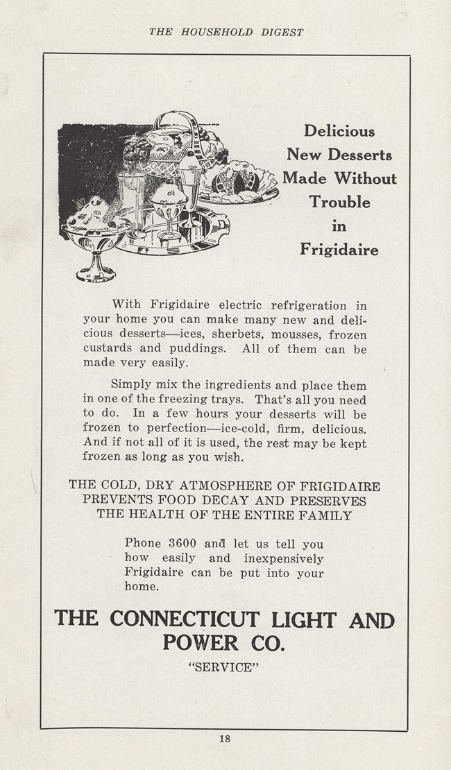 Advertisement from Mothers' Guild, St. John's Episcopal Church (Waterbury, Conn.), compiler. Household Digest and Directory. Waterbury, Conn.: Mothers' Guild, St. John's Episcopal Church, ca. 1927.