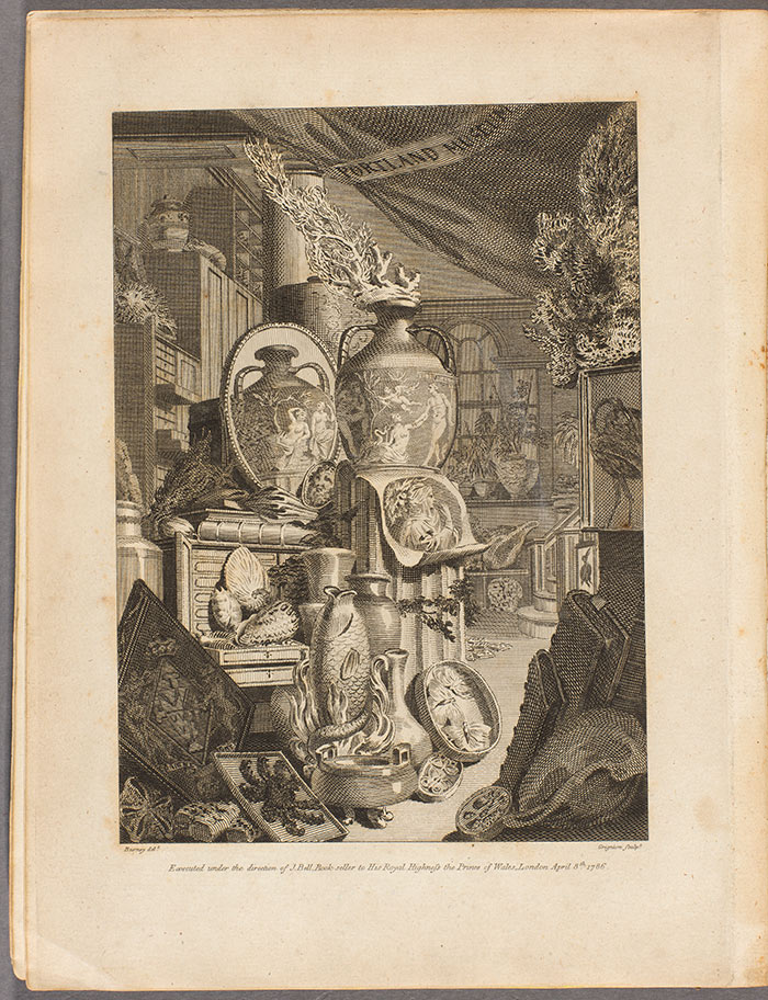 An illustration of an early modern collection in A catalogue of the Portland Museum, lately the property of the Duchess Dowager of Portland, deceased: which will be sold by auction, by Mr. Skinner and Co. on Monday the 24th of April, 1786, Skinner and Co. The Huntington Library, Art Collections, and Botanical Gardens.