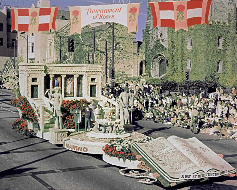 The 1969 Rose Parade included a San Marino float honoring The Huntington's 50th anniversary.