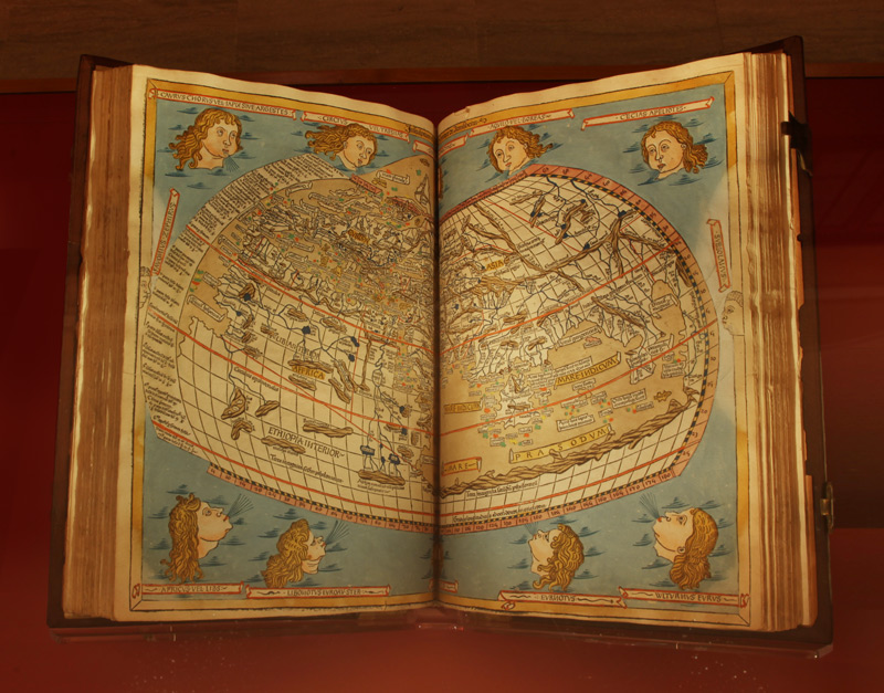 That world is represented also in a digital display that shows the spread of printing across Europe. Various cities pop up as the map changes over time, depicting the first printing of books in many of those cities.