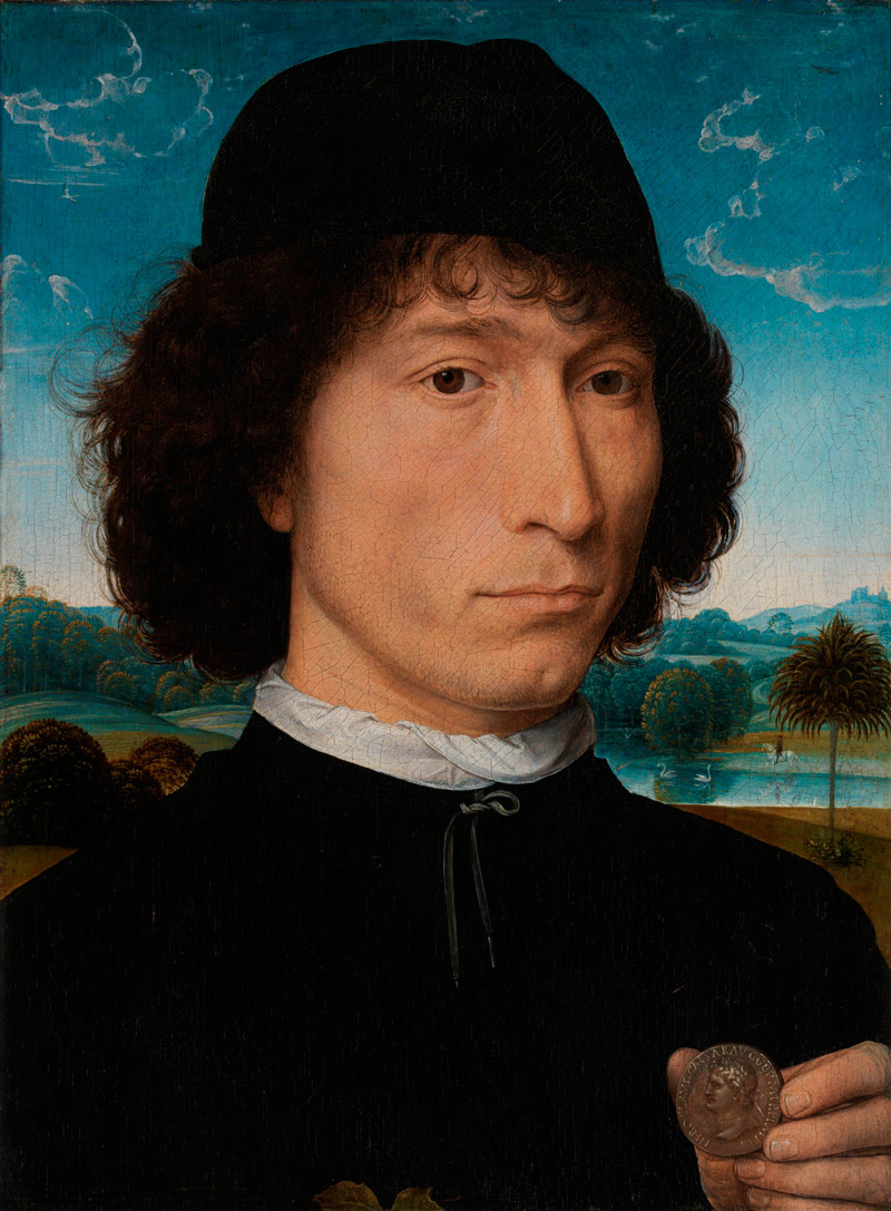 Hans Memling (ca. 1430–1494), Portrait of a Man with a Coin of the Emperor Nero, ca. 1471–74, oil on panel, The Koninklijk Museum voor Schone Kunsten, Antwerp. Photo © Lukas Art/Koninklijk Musuem voor Schone Kunsten.