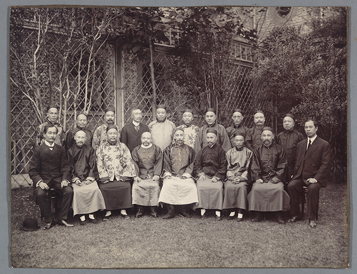 Hong Yen Chang, first row, far right, dressed in Western-style clothing. The Huntington Library, Art Collections, and Botanical Gardens.