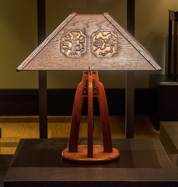 The Greenes’ attention to detail is legendary. This table lamp, made for the den of the Laurabelle A. Robinson house, is crafted from red oak and silk.