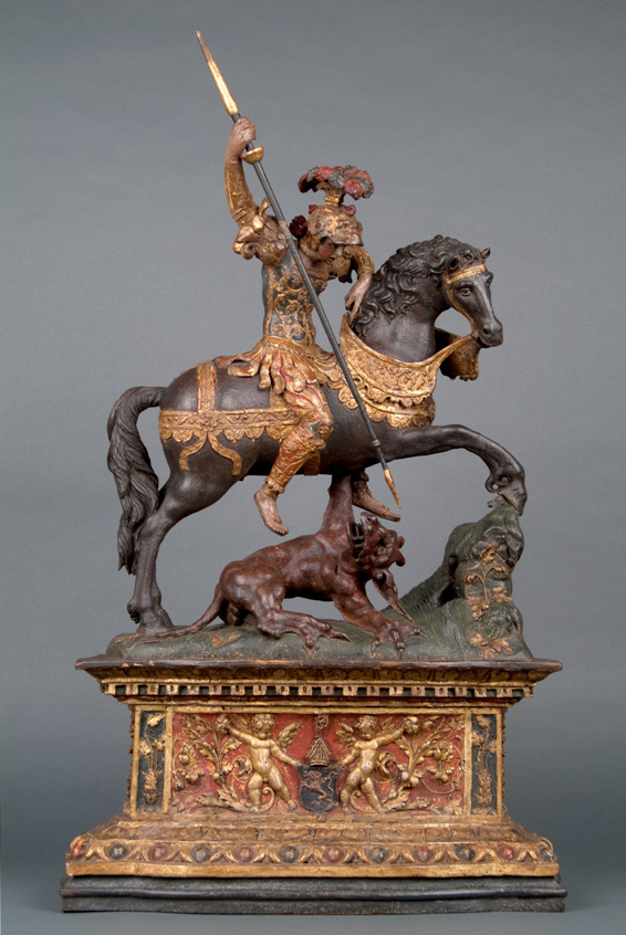 Giovan Angelo del Maino (ca. 1470–ca. 1536), St. George and the Dragon, ca. 1522–27, polychrome and gilt wood, 27 ¾ x 16 x 7 in. The Huntington Library, Art Collections, and Botanical Gardens.