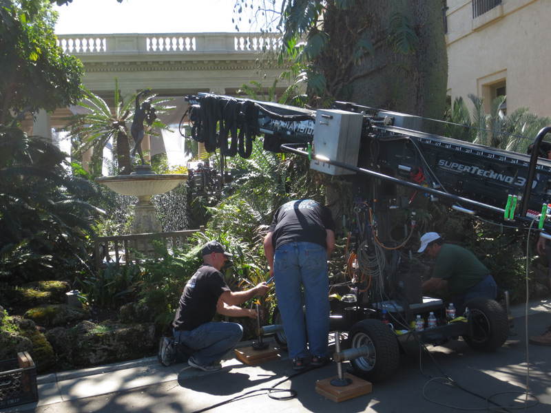 Just part of the prep for a single shot, moving past the flowing water toward actors inside the Loggia.