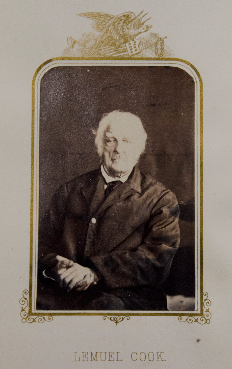 Lemuel Cook. Albumen carte-de-visite print; 3 ¼ x 2 ¼ in. From E. B. Hillard, The Last Men of the Revolution: A photograph of each from life, together with views of their homes printed in colors. Hartford: N. A. & R. A. Moore, 1864 (RB 96906).