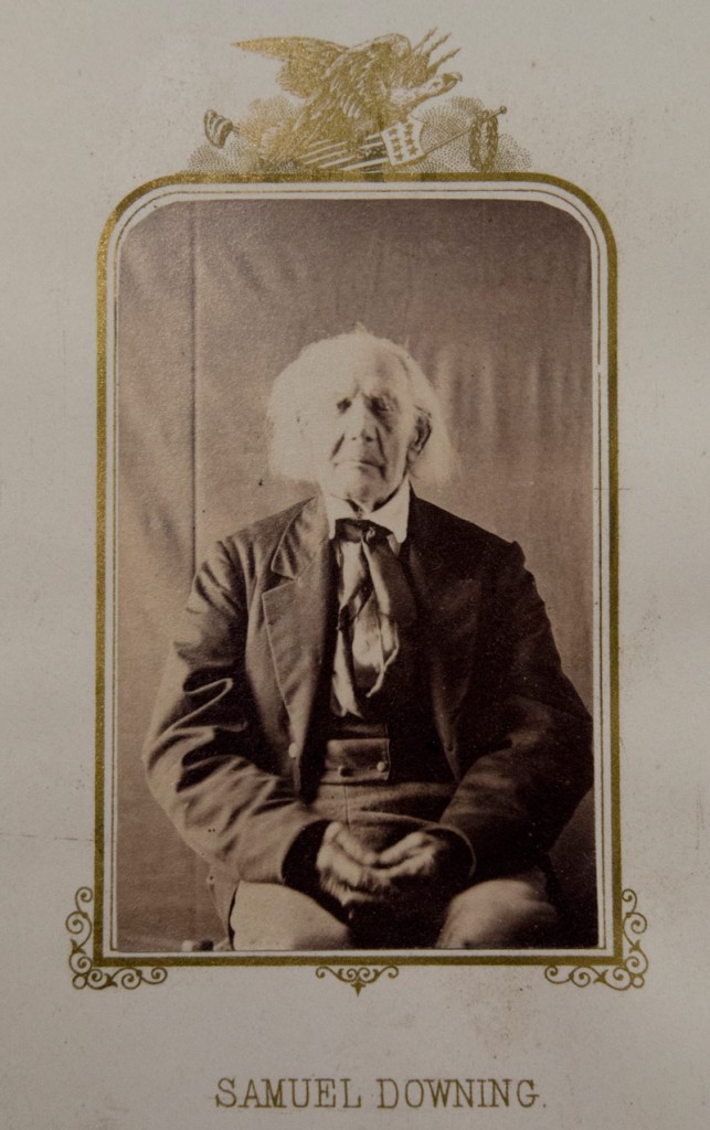 Samuel Downing. Albumen carte-de-visite print; 3 ¼ x 2 ¼ in. From E. B. Hillard, The Last Men of the Revolution: A photograph of each from life, together with views of their homes printed in colors. Hartford: N. A. & R. A. Moore, 1864 (RB 96906).