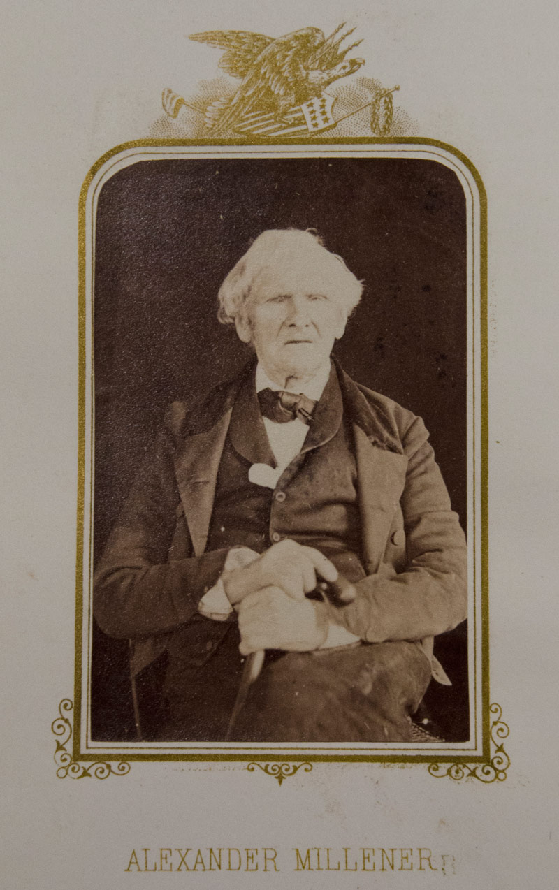 Alexander Millener. Albumen carte-de-visite print; 3 ¼ x 2 ¼ in. From E. B. Hillard, The Last Men of the Revolution: A photograph of each from life, together with views of their homes printed in colors. Hartford: N. A. & R. A. Moore, 1864 (RB 96906).