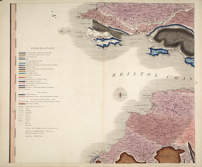 Smith needed only one final puzzle piece to begin his life’s work, which he found in 1798 when he saw a color-coded map of soils made by local landowners John Billingsley and Thomas Davis. Smith immediately realized that, with this color-coding technique, he could create a map of the geologic layers on the surface.