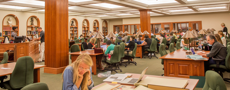 Scholars in the Ahmanson Reading Room of the Munger Research Center make good use of the collections. Photo by Martha Benedict.