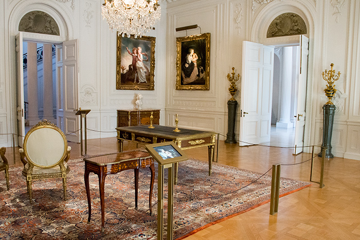 Next door, in the Small Drawing Room, you can tap another iPad to view details of an exquisite French mantel clock, created by renowned 18th-century clockmaker-to-the-kings Renacle-Nicolas Sotiau in the early 1780s. The ermine-clad fellow in Sévres porcelain at the top of the clock is its original owner, Prince Maximilian of Hapsburg, brother of Marie-Antoinette of France.