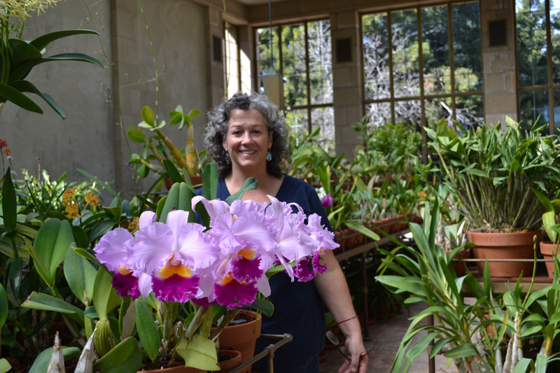 Janette Gerrity, the senior orchid specialist at the San Diego Zoo, visiting the Thornton Conservatory.