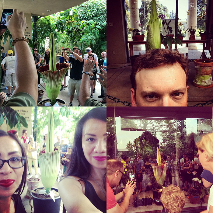Instagrammers captured a range of views of the plant, the excitement, and themselves. Photos clockwise from top left were snapped and shared with The Huntington by @airontee, @amleon13, @rachelbitan, and @maeva_yunive.