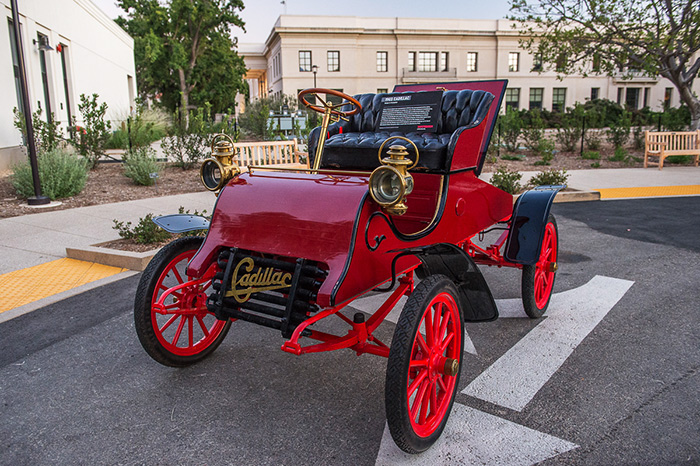 A 1903 Cadillac from the Petersen Automotive Museum, on display at The Huntington’s Aug. 8 event to celebrate the publication of Motoring West, Volume 1, Automobile Pioneers, 1900–1909, edited by Peter J. Blodgett. Photo by Martha Benedict.