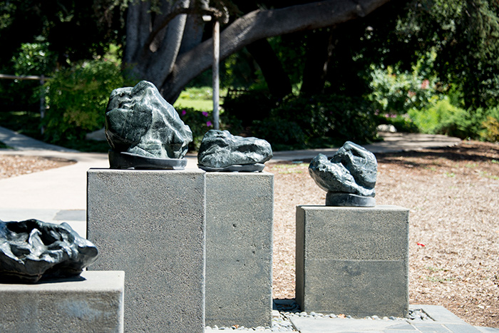 Viewing stones in the Harry Hirao Suiseki Court, located in the Japanese Garden. Photo by Kate Lain.
