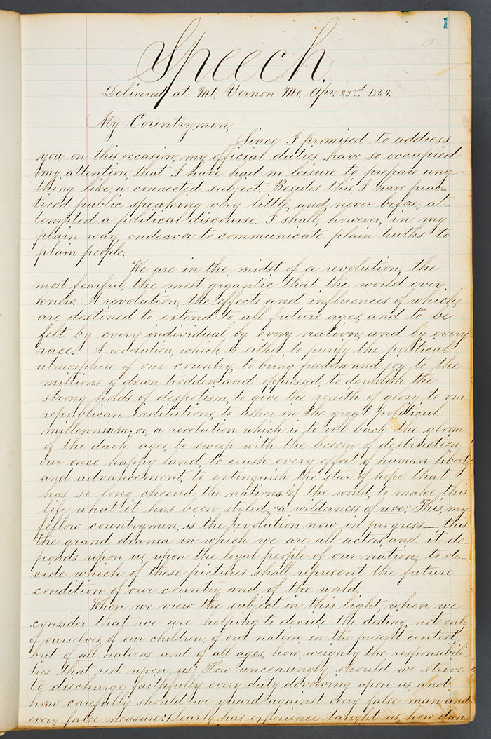 In a speech delivered at Mt. Vernon, Missouri, on April 23, 1864, John R. Kelso declared: “We are in the midst of a revolution . . . the effects and influences of which, are destined to extend to all future ages, and to be felt by every individual, by every nation, and by every race.” The Huntington Library, Art Collections, and Botanical Gardens.