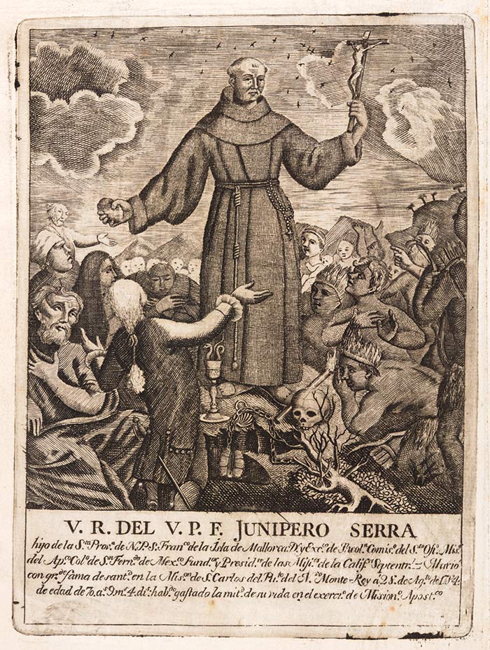 What and how people were moved—and to what end—were central to the experience of religious affections. Here, the Franciscan friar and missionary Junípero Serra, recently and controversially canonized by the Catholic Church, preaches to a crowd of Native Americans holding a stone in one hand and a crucifix in the other. Frontispiece of Relacion Historica, 1787, by Francisco Palou. The Huntington Library, Art Collections, and Botanical Gardens.