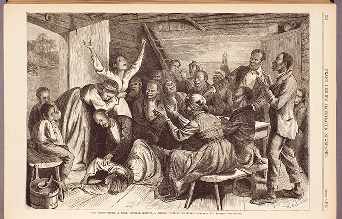 Great Awakening transformations, long acknowledged to have democratized religious access and authority, resonate with the spiritual lives and performances of marginalized persons, including slaves, indigenous peoples, and women. “The Sunny South—A Negro Revival meeting—A Seeker 'Getting Religion',” Frank Leslie’s Illustrated Newspaper, Aug. 9, 1873 issue, page 352. The Huntington Library, Art Collections, and Botanical Gardens.