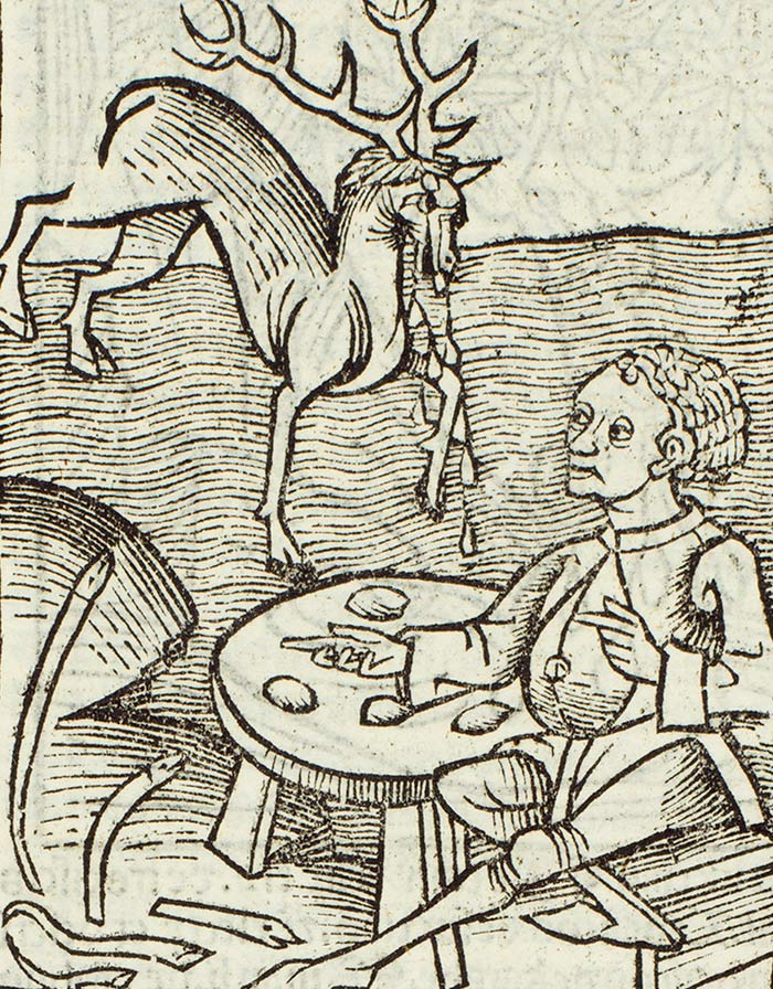 Detail of venomous serpents and a bezoar-weeping hart from Hortus sanitatis, Strassburg, approximately 1507. The Huntington Library, Art Collections, and Botanical Gardens.